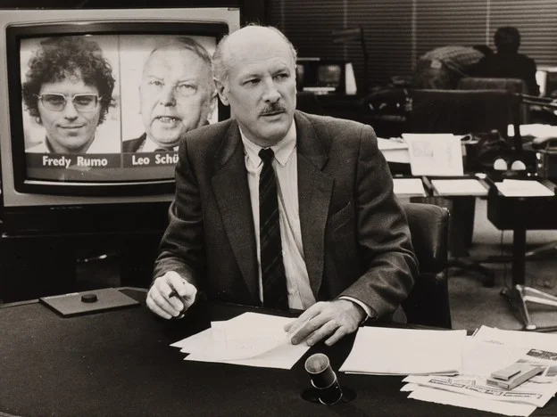 Der Journalist, Publizist und ehemalige Reiseleiter gehört zu den profiliertesten Journalisten der Schweiz. Er war Redaktor bei der (alten) Weltwoche und war lange Jahre Leiter und Moderator der Tagesschau des Schweizer Fernsehens. Er ist Mitbegründer der «Rundschau» und war Chefredaktor und Chefkommentator des Schweizer Fernsehens. Das Bild zeigt ihn als Tagesschau-Moderator im Jahr 1985. Gysling gehört zum Autorenteam von Journal21. (Foto: SRF)