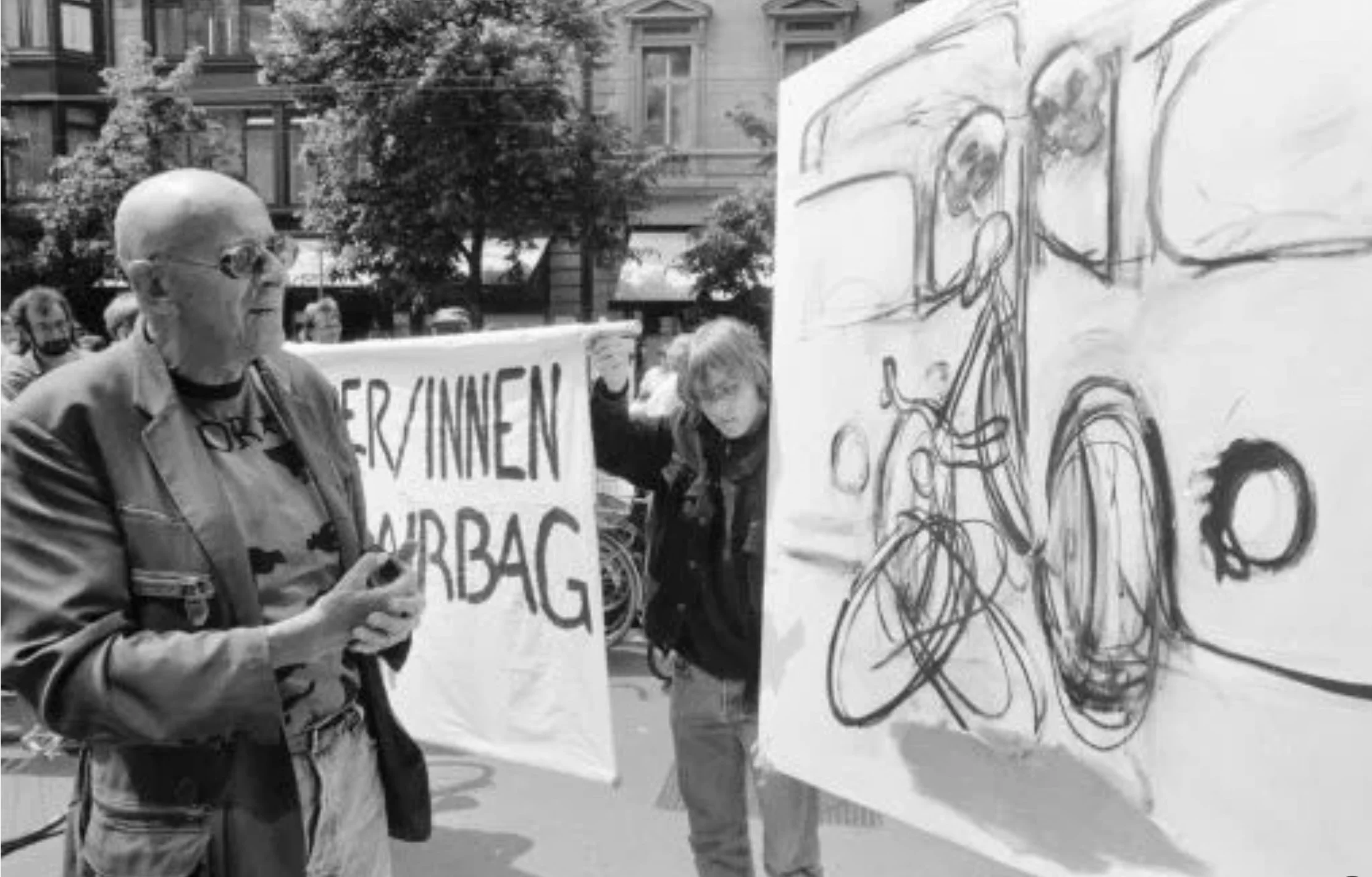 Der in Lugano geborene Schweizer Maler stirbt in Zürich. Er gilt als Vertreter des Realismus und machte während seines Lebens die Bekanntschaft mit Joan Miró, Fernanrd Léger, Pablo Picasso und den Giacometti-Brüdern. 1953 stellte er im Zürcher Helmhaus 65 Kunstwerke aus. 1970 überreichten ihm italienische Emigranten in der Schweiz den Preis „Niklaus von der Flüe“, den er zusammen mit Max Frisch und Alexander Seiler entgegennahm. In den Achtzigerjahren malte er Punks, Squatters und Drogensüchtige im Platzspitz-«Needle Park». 1989 organisierte das Zürcher Kunsthaus eine Ausstellung zu seinen Ehren. Er starb im Alter von 71 Jahren an einem Herzanfall in seinem Atelier an der Zürcher Rousseaustrasse. Im Bild Comensoli am 15. Mai 1993, wenige Tage vor seinem Tod, an einer Velo-Demo in Zürich. (Foto: Keystone)