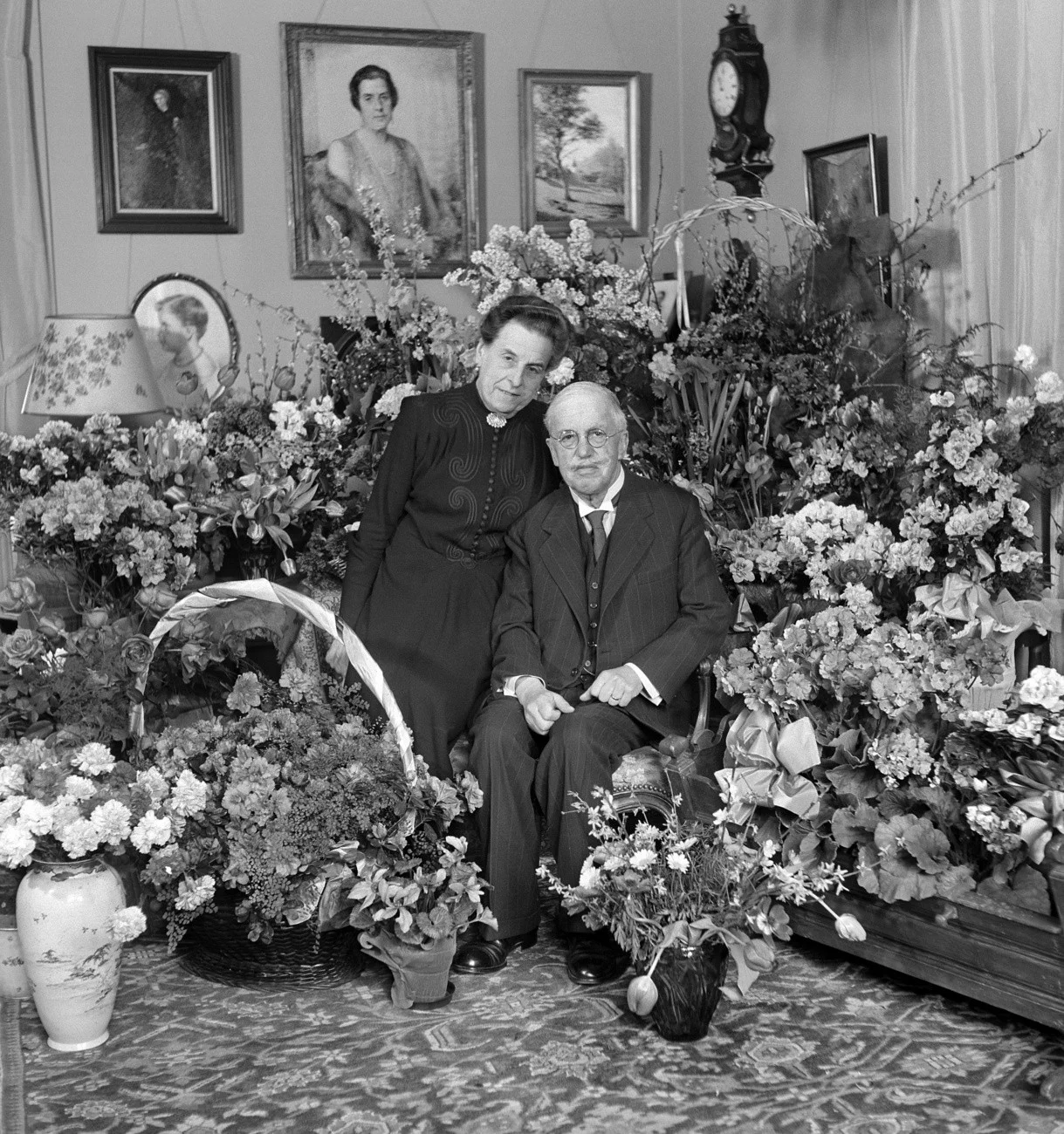 1868: Geburt von Edmund Schulthess, Schweizer Bundesrat von 1912 bis 1935 (FDP/AG). Schulthess überzeugt nach dem 1. Weltkrieg die Wirtschaftsverbände, die wöchentliche Arbeitszeit auf 48 Stunden zu begrenzen. Dies stösst bei rechten Kreisen auf Widerstand. 1922 will er mit einer «Lex Schulthess» die Arbeitszeit wieder auf 54 Stunden verlängern – auf drei Jahre befristet. Diese Vorlage wird 1924 in einer Volksabstimmung abgelehnt. Seine staatsinterventionistische Politik bringt ihm viele Feinde ein. Das von Schulthess eingebrachte Einführungsgesetz zur AHV und IV scheitert 1931 in der Volksabstimmung. Im Zuge der Weltwirtschaftskrise beginnt Schulthess die Einfuhren zu kontingentieren und die Preise und Löhne zu senken. Das bringt ihm harte Kritik ein. Amtsmüde tritt er am 15. April 1935 zurück. Im Bild: Schulthess mit seiner Frau an seinem 75. Geburtstag in Bern. (Foto: Keystone/Photopress-Archiv)