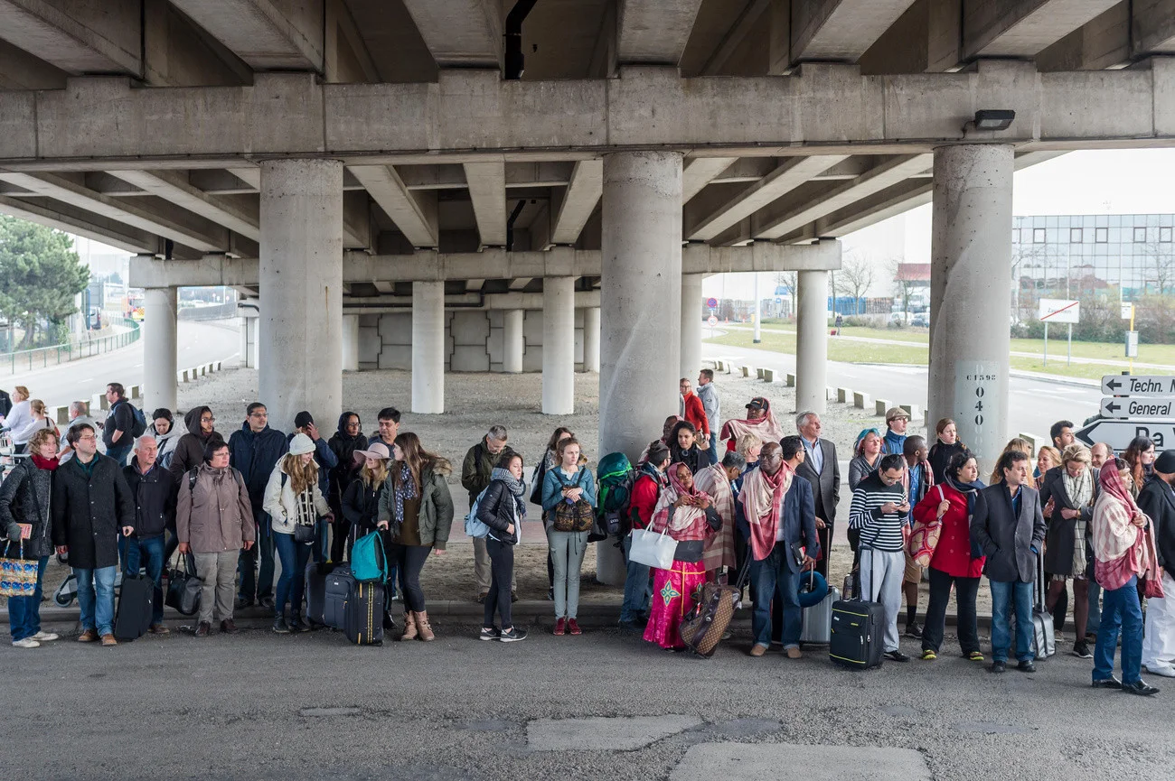 Auf dem Brüsseler Flughafen «Zaventem» sprengen sich in der Ankunftshallte zwei Selbstmordattentäter in die Luft. Ein weiterer Jihadist verübt in der Brüsseler Innenstadt, im U-Bahnhof Maelbeek, ein Selbstmordattentat. Insgesamt sterben 35 Menschen aus 22 Ländern, inklusive der Attentäter. 300 werden verletzt. Der «Islamische Staat» übernimmt die Verantwortung für die Anschläge. Das Bild zeigt Menschen, die nach den Explosionen im Flughafen evakuiert worden waren. Belgien erhöhte die Terrorwarnstufe auf die höchste Stufe, leitete ankommende Flugzeuge und Züge um. Menschen wurden aufgefordert, dort zu bleiben, wo sie waren. Flughäfen in ganz Europa verschärften die Sicherheitsvorkehrungen. (Fotoi: Keystone/AP/Geert Vanden Wijngaert)