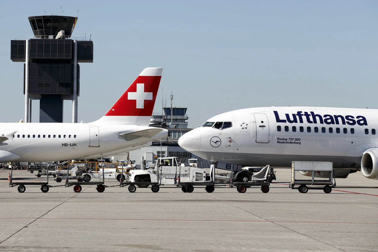 Die deutsche Lufthansa übernimmt die defizitäre Schweizer Fluggesellschaft Swiss. Die Führungsetagen von Swiss und Lufthansa hatten zuvor monatelange geheime Verhandlungen geführt. Der Kaufpreis beträgt 310 Millionen Euro. Vereinbart wird der Fortbestand der Marke «Swiss» und der Erhalt des Drehkreuzes Zürich. Konzernchef wird der Deutsche Christoph Franz. Im Bild: Eine Swiss- und eine Lufthansa-Maschine auf dem Genfer Flughafen Cointrin (Keystone/Salvatore Di Nolfi)