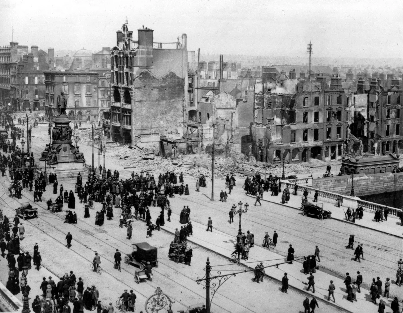 Er beginnt am Ostermontag und dauert bis zum 29. April. Das Bild zeigt Schäden nach dem bewaffneten Aufstand. Rechts ist die O'Connell-Brücke, die in die O'Connell Street übergeht. Der Osteraufstand von 1916 ist eines der berühmtesten Kapitel in Irlands Kampf um die Unabhängigkeit. Ziel der Aufständischen ist die Unabhängigkeit Irlands von Grossbritannien. Sie besetzen mehrere Gebäude in Dublin und proklamieren die unabhängige irische Republik. Der Aufstand scheitert. Die gefangen genommenen Kommandanten der «Irisch Republikanischen Armee“ wurden exekutiert, was die Bevölkerung gegen Grossbritannien aufbrachte. Der Aufstand gilt als Wendepunkt in der irischen Unabhängigkeitsbewegung. Irland wird 1922 unabhängig. (Foto: Keystone/AP)