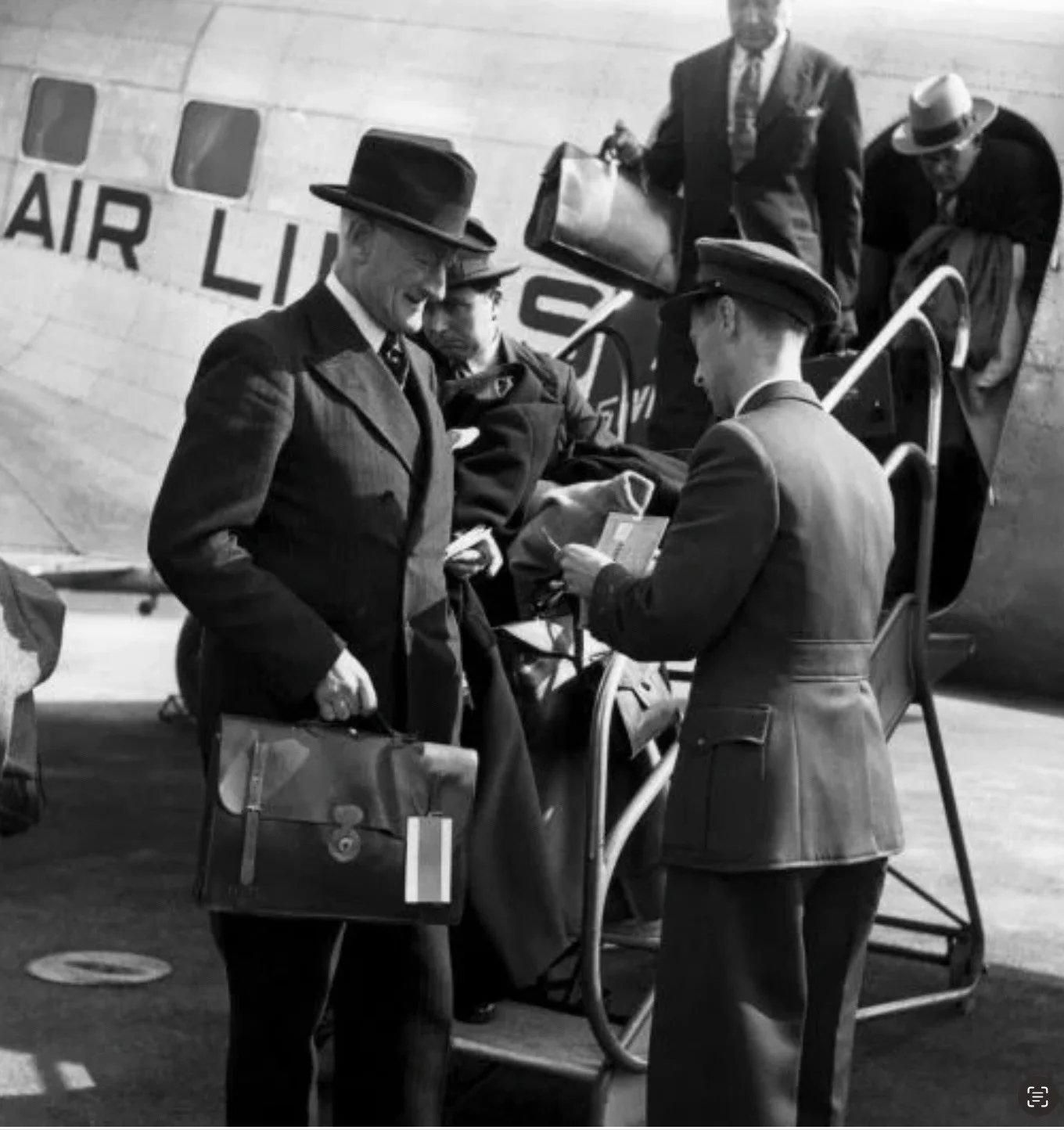 Die Verhandlungen über deutsche Vermögenswerte in der Schweiz werden mit dem Washingtoner Abkommen erfolgreich beendet. Bei dem Vertragswerk handelt es sich um einen Staatsvertrag zwischen der Schweiz einerseits und den USA, Frankreich und Grossbritannien anderseits. Geleitet wurde die Schweizer Delegation von Minister Walter Stucki. Das Bild zeigt ihn nach Abschluss der Verhandlungen in Washington bei seiner Rückkehr in die Schweiz. Der Vertrag regelt nach dem Zweiten Weltkrieg die geltend gemachten Ansprüche der westlichen Siegermächte an den deutschen Vermögen, die in die Schweiz gelangt sind. Dazu gehört auch das von der Schweizerischen Nationalbank von Deutschland erworbene Raubgold. Die Schweiz verpflichtete sich, die Ansprüche mit einer Zahlung von 250 Millionen Franken zu erledigen. Im Gegenzug blockieren die USA Schweizer Guthaben nicht mehr. An einer Sondersession in Bern gibt das Parlament – widerwillig – grünes Licht für den Vertrag. (Foto: Keystone/Photopress-Archiv)