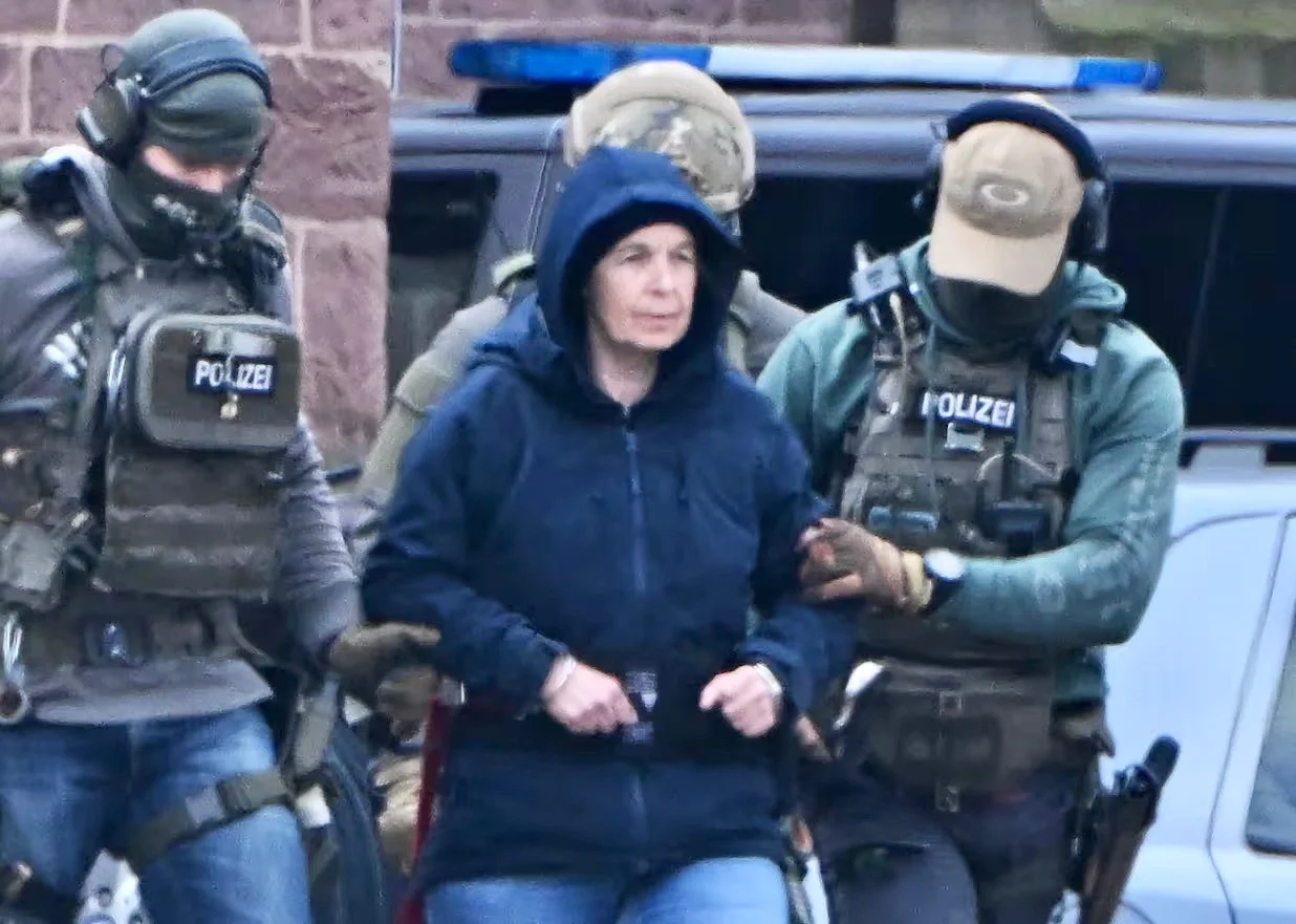 2024: Festnahme von Daniela Klette. Das ehemalige Mitglied der linksterroristischen «Roten Armee Fraktion» (RAF) wird in einer Mietwohnung im Berliner Stadtteil Kreuzberg festgenommen. Nachdem sie die Wohnungstür geöffnet und einen italienischen Pass vorgezeigt hatte, verlangte sie, auf die Toilette zu gehen und informierte von dort per Handy den RAF-Mann Burkhard Garweg über ihre bevorstehende Festnahme. Klette, die der dritten Generation der RAF angehörte, werden zahlreiche Sprengstoffanschläge und Raubüberfälle vorgeworfen. (Polizeifoto)
