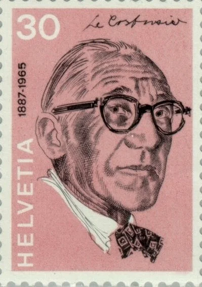 1965: Tod von Le Corbusier (Charles-Édouard Jeanneret-Gris), schweizerisch-französischer Architekt, Stadtplaner, Bildhauer, Möbel-Designer. Geboren am 6. Oktober 1887 in La Chaux-de-Fonds. 17 seiner Bauten gehören zum Unesco-Welterbe. Im Bild eine 30-Rappen-Marke der Schweizer Post vom 21. September 1972.