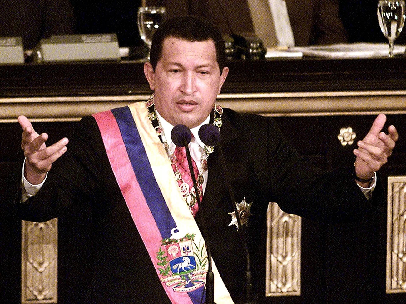 Der venezolanische Offizier war von 1999 bis zu seinem Tod 2013 der 62. Staatspräsident von Venezuela. Er hatte sich Simon Bolivar als Vorbild genommen und kämpfte für ein vereintes Südamerika. Seine Revolution bezog sozialistische und marxistische Ideen mit sein. Mit der Verstaatlichung der Ölindustrie finanzierte er seinen «Sozialismus des 21. Jahrhunderts». Sein Nachfolger ist Nicolás Maduro, der sich auf Chávez bezieht. Im Bild: Chávez am 28. September 2001 (Foto: Keystone/AFP/Andres Alvarez)