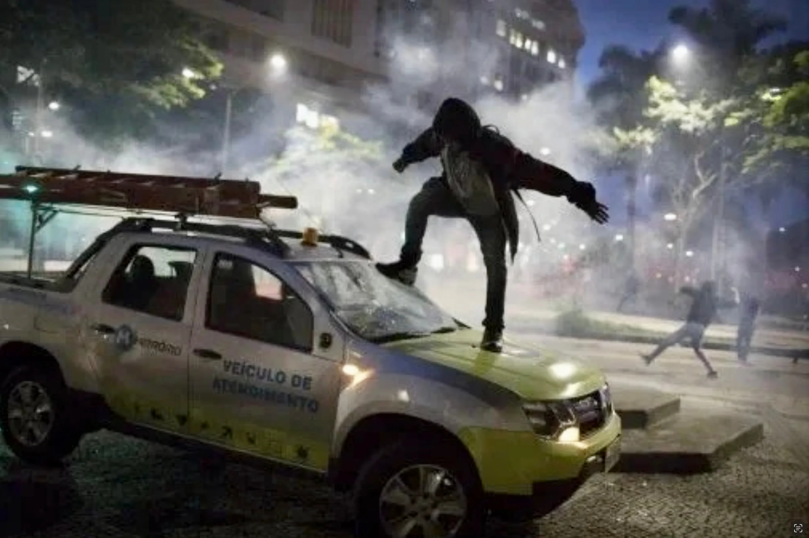 Mit einem Generalstreik protestieren Brasilianer und Brasilianerinnen gegen die Sparpolitik und die angebliche Korruption von Präsident Michel Temer. Der Streik schlägt an vielen Orten in Gewalt um: Autos und Busse werden angezündet. In Rio und Sao Paulo setzt die Polizei Tränengas ein. Die Demonstranten fürchten, dass ihre Renten gekürzt und die Arbeitsplätze ausgelagert werden. Zudem werfen sie dem Präsidenten korrupte Machenschaften vor. Der Generalstaatsanwalt wirft Temer Beteiligung an einer kriminellen Institution und Behinderung der Justiz vor. (Foto: Keystone/AP)