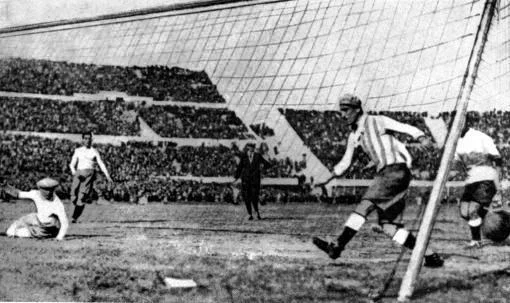 1930: Uruguay gewinnt die erste Fussball-Weltmeisterschaft (siehe oben)