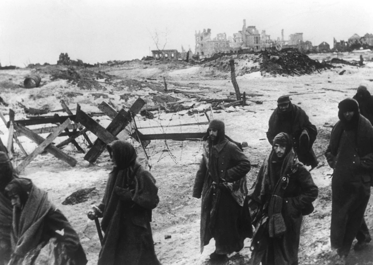 31. Januar 1943: Deutsche Kapitulation in Stalingrad: Überlebende deutsche Soldaten verlassen nach der deutschen Kapitulation Stalingrad. Die Ende August 1942 bis nach Stalingrad vorgestossene deutsche 6. Armee unter General Paulus mit rund 280'000 Mann wurde Ende November 1942 von der Roten Armee eingekesselt. Trotz des Verbots Adolf Hitlers zu kapitulieren oder auszubrechen, kapitulierten der grösste Teil der Deutschen Truppen angesichts der hoffnungslosen Lage am 31. Januar 1943, die restliche Armee folgte der Kapitulation am 2. Februar 1943. Bei der Schlacht um Stalingrad, die als eine der kriegsentscheidenden in die Geschichte eingegangen ist, fielen auf deutscher Seite rund 146'000 Soldaten, 90'000 kamen in Kriegsgefangenschaft; die sowjetischen Verluste sind nicht genau bekannt, liegen aber um ein mehrfaches höher. (Foto: Keystone/Photopress-Archiv)