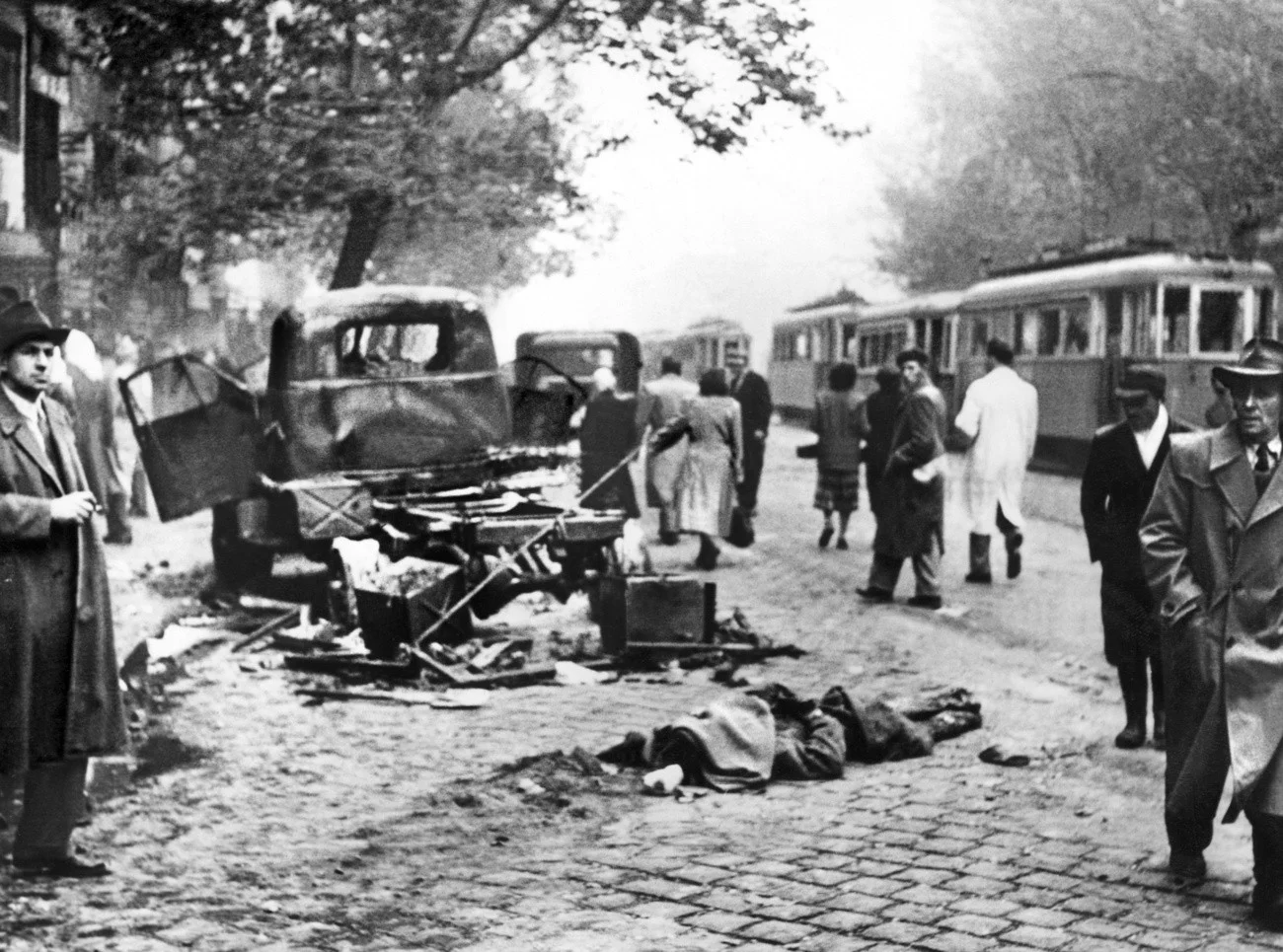 In Ungarn beginnen sowjetische Truppen, den Volksaufstand niederzuschlagen. Da Bild stammt aus Budapest. (Keystone/Str)