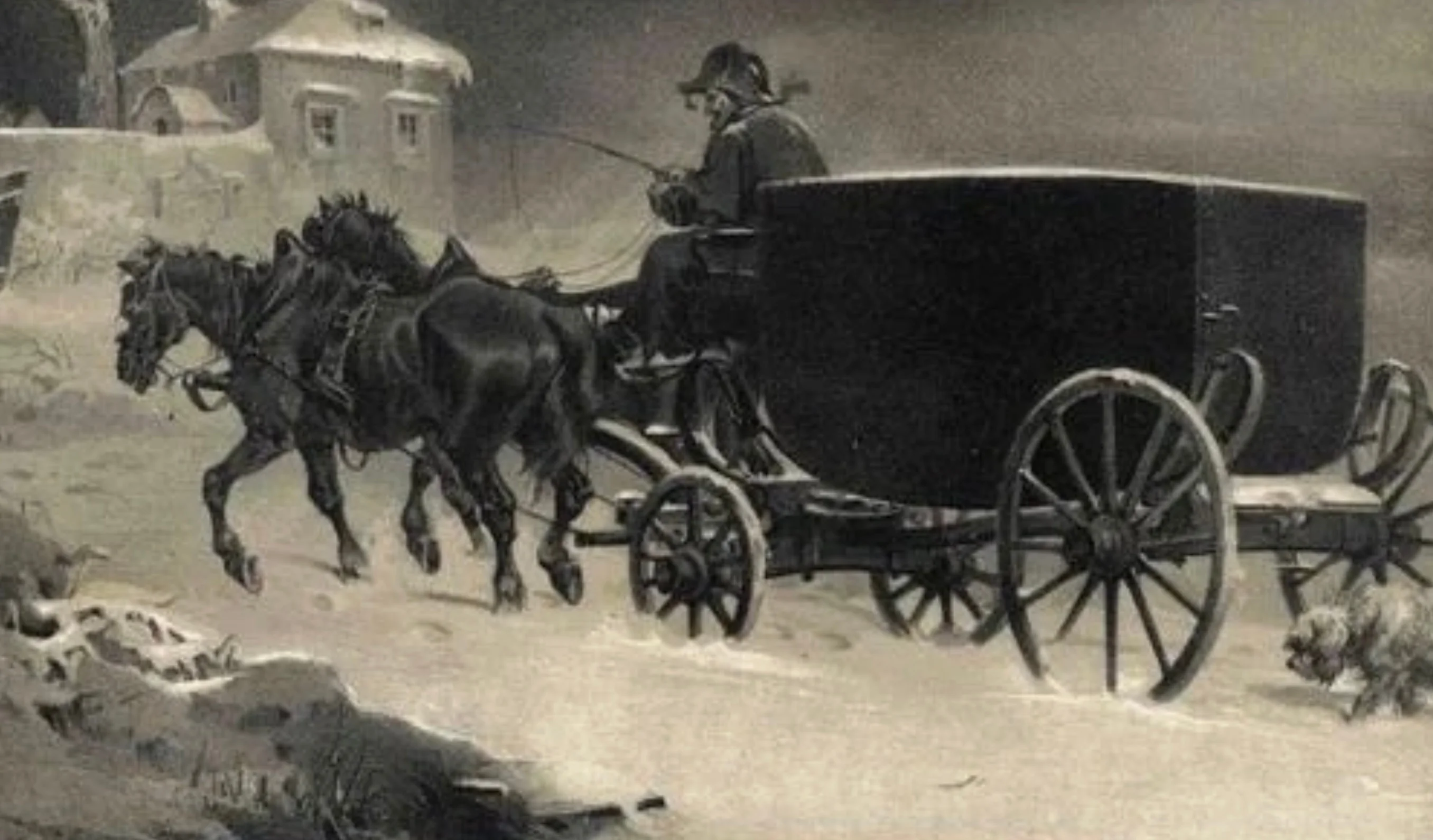 1812: Napoleon verlässt nach seinem gescheiterten Russlandfeldzug in Smorgoni (heute Weissrussland) die Reste der Grande Armée und fährt auf dem Schlitten Richtung Paris.