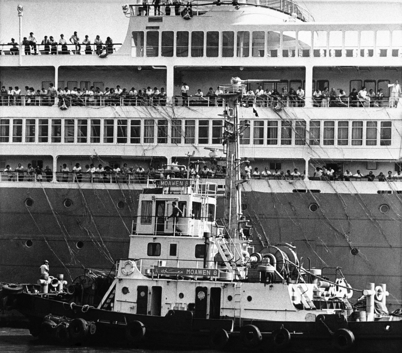 Palästinensische Terroristen der von Abu Abbas geführten «Volksfront für die Befreiung Palästinas» entführen zwischen Alexandria und Port Said das italienische Kreuzfahrtschiff Achille Lauro mit etwa 80 Personen an Bord. Die Kidnapper verlangten die Befreiung von 50 inhaftierten Palästinensern und Gesinnungsgenossen. Um ihrer Forderung Nachdruck zu verleihen, erschiessen sie einen 69-jährigen teilgelähmten jüdischen amerikanischen Touristen. Nach langen Verhandlungen wurde in Port Said den Entführern freies Geleit zugesichert. Die Amerikaner zwangen anschliessend mit vier Jagdflugzeugen ein ägyptisches Verkehrsflugzeug, das die Kidnapper von Port Said nach Algerien bringen sollte, zur Landung auf Sizilien. Der italienische Ministerpräsident Bettino Craxi entschied, Abu Abbas die Ausreise nach Belgrad zu erlauben, von wo aus er nach Bagdad weiterflog. Einige der Entführer wurden zu Haftstrafen verurteilt. Abu Abbas wurde 2003 von US-Spezialtruppen in Bagdad festgenommen, wo er jahrelang unter dem Schutz von Saddam Hussein lebte. Abbas starb am 8. März 2004 an den Folgen einer Herzkrankheit. Im Bild: Passagiere und Crew-Mitglieder auf der Achille Laura nach dem Ende der Entführung (Keystone/AP/Giulio Broglio/Michel Lipchitz)