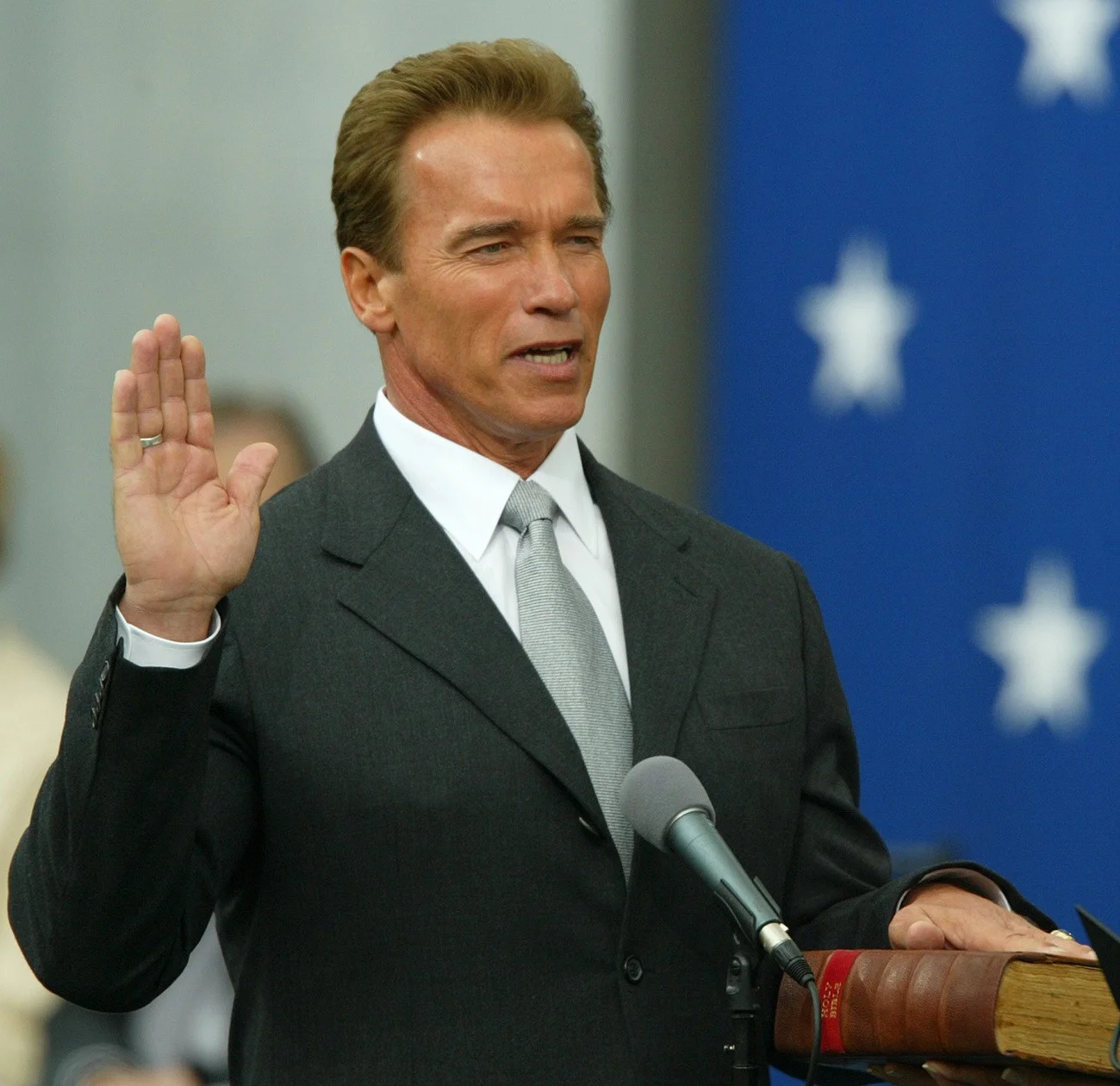 Arnold Schwarzenegger wird 38. Gouverneur von Kalifornien (bis 2011). Im Bild: Schwarzenegger leistet den Eid als Gouverneur am 17. November 2003 im Capitol in Sacramento. (Keystone/EPA/John Mabanglo)