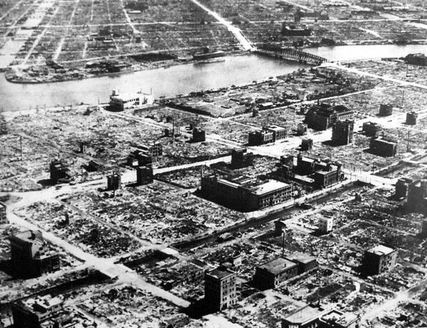 100‘000 Menschen sterben. Kein konventioneller Bombenangriff hat so viele Tote gefordert. Das Bild zeigt Tokio am Tag nach dem Angriff. (PD)