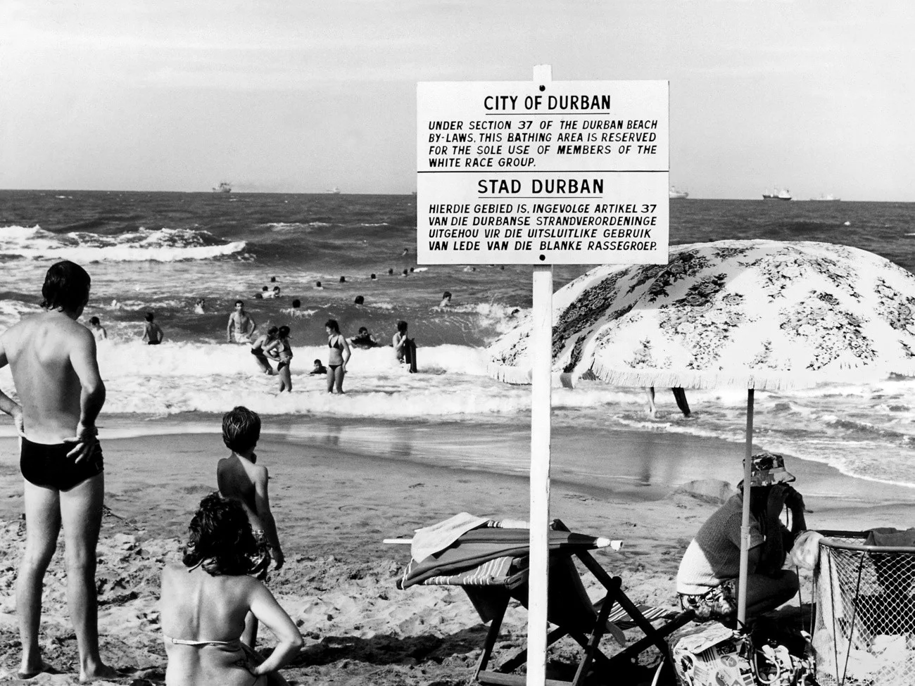 Das Bild zeigt von 1976 einen Strand in Durban, der für Weisse reserviert ist.