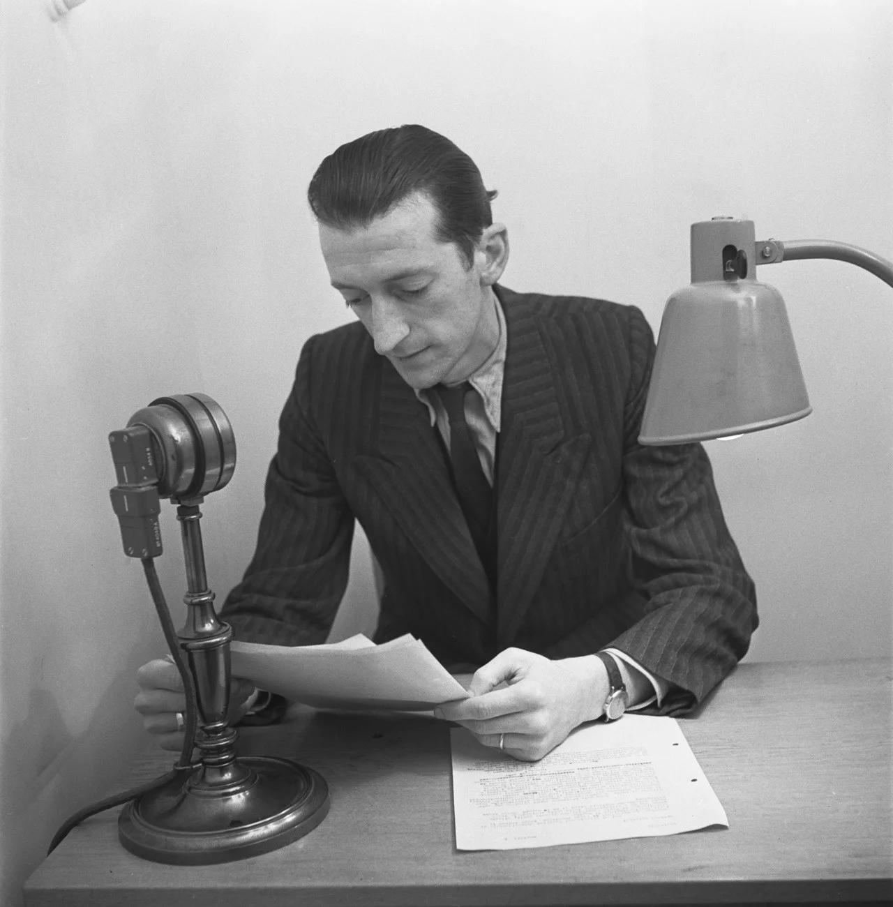 Vor 95 Jahren, am 24. Februar 1931, wurde die SRG gegründet. Zwar gab es schon seit Mitte der Zwanzigerjahre vereinzelte Nachrichtensendungen, doch erst mit der SRG wurden regelmässige, landesweite Nachrichtensendungen ausgestrahlt. Das Bild stammt aus dem Jahr 1939. Ein Journalist und Nachrichtensprecher der Depeschenagentur (SDA) verliest in einem Kämmerchen des Berner Radiostudios die Nachrichten.