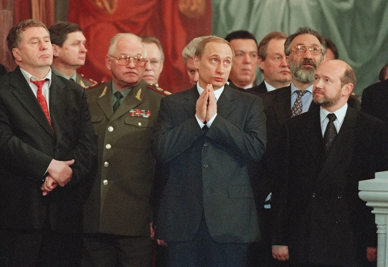 Das Bild stammt vom 8. Januar 2000. Putin nimmt an einer Weihnachtsfeier der russisch-orthodoxen Kirche in der Erlöser-Kathedrale in Moskau teil. Eine Pointe in diesem Bild besteht darin, dass der Herr ganz rechts an Lenin erinnert. Der hätte aber nie ein Gotteshaus betreten.