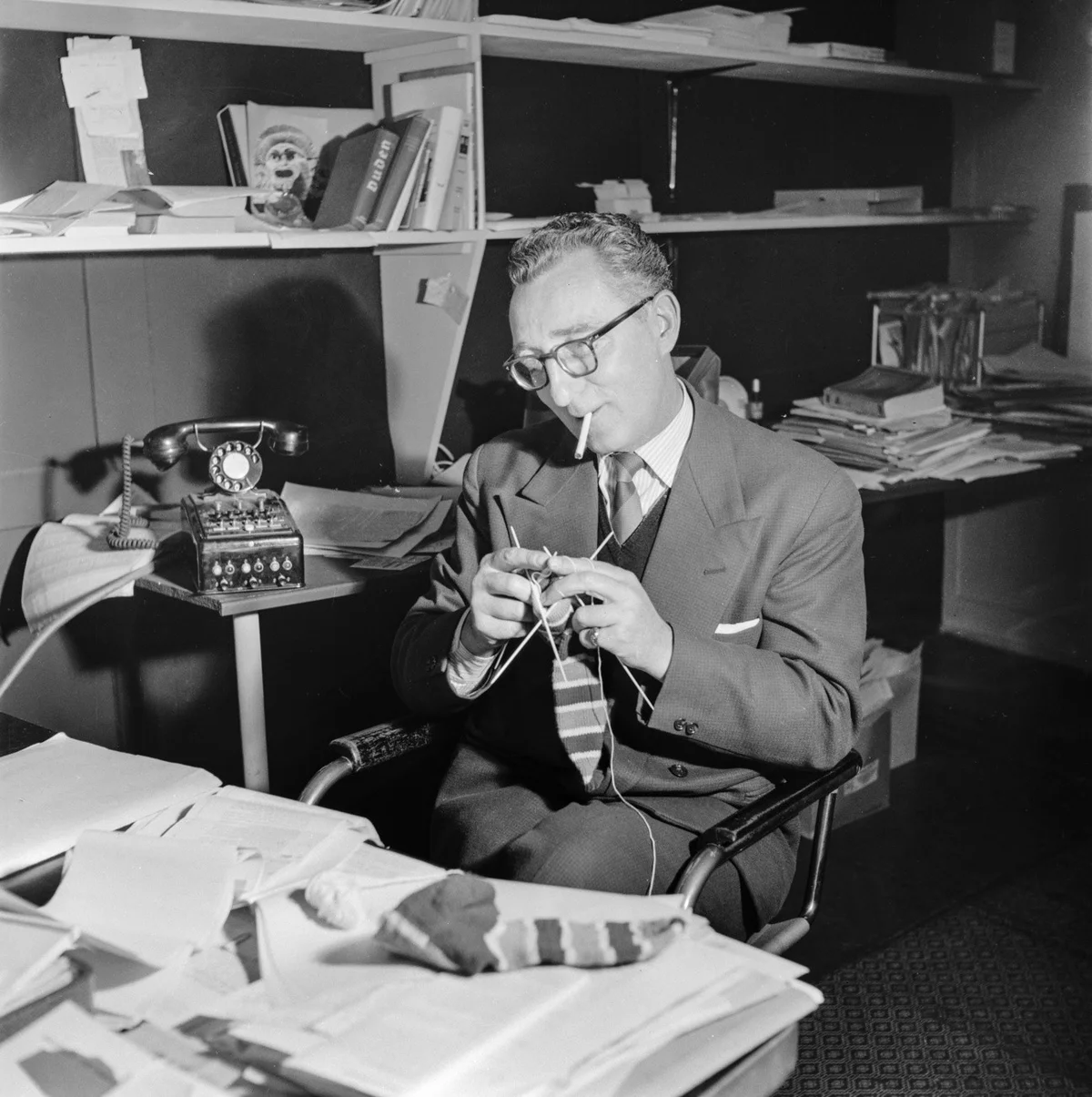 Immer mehr Männer greifen zu Nadel und Wolle. Stricken entspanne und baue Stress und Frustrationen ab, rufen uns amerikanische Psychologen zu. Erst in den letzten Jahrhunderten entwickelte sich Stricken zu einer Frauentätigkeit. Vor dem 16. Jahrhundert waren es vor allem Männer, die gestrickt haben. Stricken galt als anspruchsvoller klassischer männlicher Handwerksberuf. Sogar Friedrich der Grosse soll gestrickt haben. Das Bild zeigt einen strickenden Mann in der Schweiz im Jahr 1965.