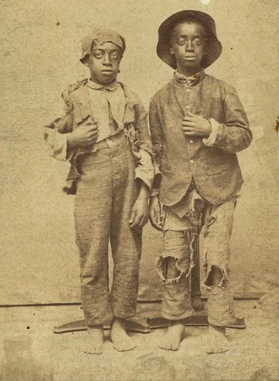 Zerlumpte Kleider, suchender, hilfloser Blick: Wer sind diese Kinder? Wo und wie entstand dieses Foto? Wir wissen es nicht. Das einzige, was wir wissen, es entstand während des amerikanischen Bürgerkrieges vor 160 Jahren. Die Washingtoner «Library of Congress», die das Bild jetzt publiziert, erklärt lapidar: «Man kommt nicht umhin, sich zu fragen, unter welchen Umständen, diese beiden afroamerikanischen Jungen fotografiert wurden.»